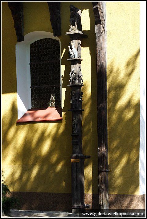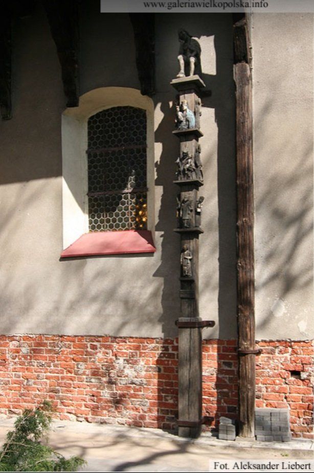 Zabytkowa rzeźba Chrystusa Króla, znajdująca się niegdyś na zewnątrz, we wnęce, gdzie obecnie znajduje się rzeźba św. Jana Pawła II. Rzeźba odrestaurowana w 2008r.