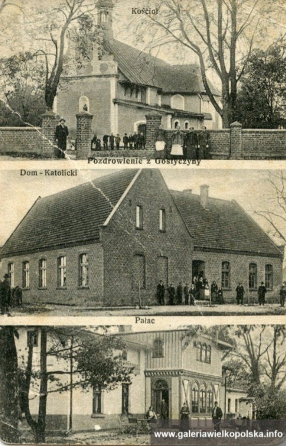Kościół, Dom Katolicki oraz dawny dwór w Gostyczynie.