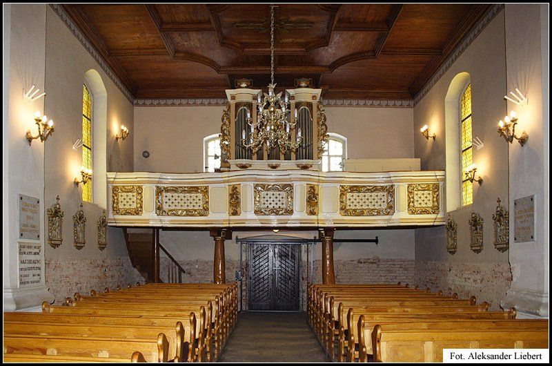 Prospekt organowy, chór i balustrada chóru kościelnego po remoncie świątyni w 2008r.